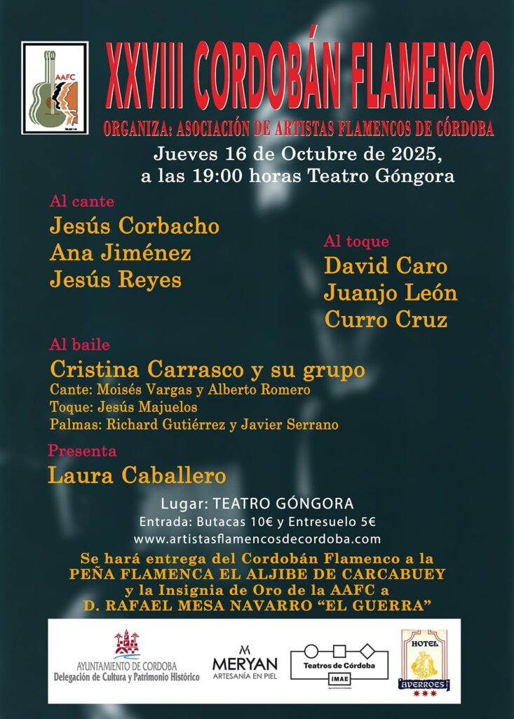 El arte jondo volverá a ser protagonista en la agenda cultural cordobesa durante el mes de octubre con la celebración del Cordobán Flamenco que organiza la Asociación de Artistas Flamencos de Córdoba. La cita